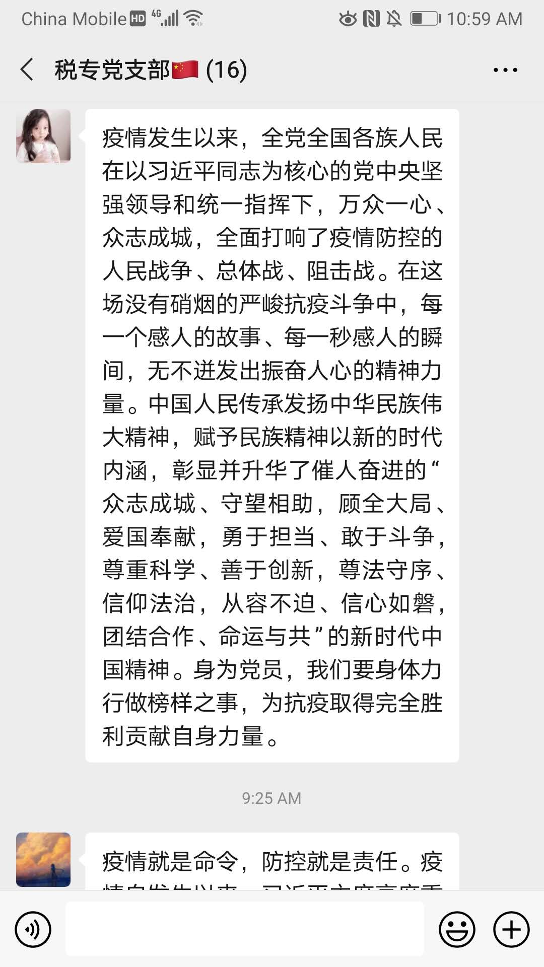 首先,党支书冯欣然同志通过微信群共享了学习强国平台上《人民至上 全国抗击新冠肺炎疫情表彰大会特别报道》系列专辑,全体党员一同学习了“共和国勋章”获得者钟南山与“人民英雄”国家荣誉称号获得者张伯礼、张定宇、陈薇等人的英雄事迹。这一系列英雄故事体现的“人民至上、生命至上”的精神,让支部党员在真实的事迹中加深了对坚持以人民为中心的党的精神的理解。