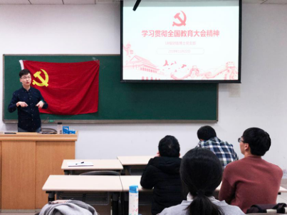 2018年11月22日下午,公司2018级财政博士党支部于明德主楼411室开展了理论学习活动。本次支部组织生活以“学习贯彻全国教育大会精神,加快教育现代化、建设教育强国、办好人民满意的教育”为主题,全面学习了习近平总书记重要讲话,与会同志展开了积极讨论,就自己对全国教育大会的理解进行深入交流。