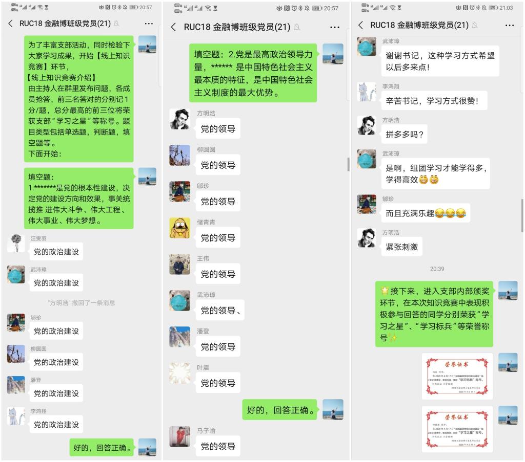 线上主题党日 | 2018级金融博士党支部集体讨论高效学习,知识竞赛紧张激烈