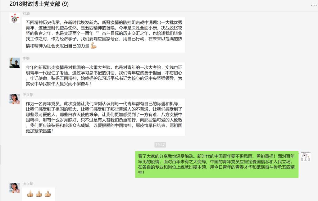 线上主题党日 | 2018级财政博士党支部学习五四精神,勇担时代使命