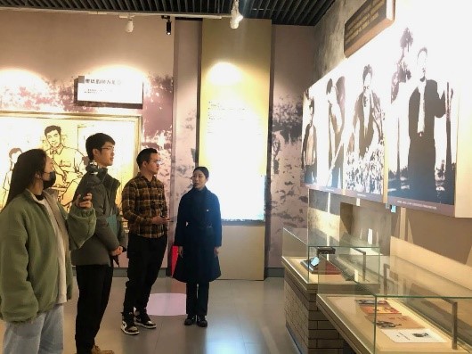 展览馆共分为两层,一层聚焦焦裕禄生平事迹,二层关注兰考县脱贫攻坚。此次参观活动首先从一层开始。焦裕禄同志“活着我没有治好沙丘,死了也要看着你们把沙丘治好”的格言挂在展览馆一层的大厅里,诠释着他“意莫高于爱民,行莫厚于乐民”的高尚情怀。大厅另一侧张挂着习近平总书记对焦裕禄同志的评语:“要学习弘扬焦裕禄同志艰苦朴素、廉洁奉,任何时候都不搞特殊化的道德情操。”展览厅展示了焦裕禄同志早期艰苦的生活经历与盼翻身求解放、走上革命道路的经过。年轻时的苦难并未让焦裕禄同志退却,反而使他磨砺出“敢教日月换新天”的无畏奋斗品质。焦裕禄同志在社会主义新中国的建设中,响应党的号召,投身工业战线,与车间工人同吃、同住、同劳动,成为工业管理内行。透过讲解和一张张照片,一个鲜活的焦裕禄形象呈现在支部成员面前。“十条工作经验”彰显着焦裕禄同志对工作的一丝不苟,对人民的无私奉献,对党的赤子忠诚。二层讲述的是身为人民公仆、干部楷模的焦裕禄同志的诸多感人事迹。担任兰考县委书记后,他深入基层,调查研究,统一领导班子思想,带领兰考人民战胜三害,鞠躬尽瘁创造伟业。焦裕禄同志曾对组织说:感谢党把他安排到最苦难的地方,越困难的地方越能够锻炼人,不改变兰考面貌他绝不离开这里。