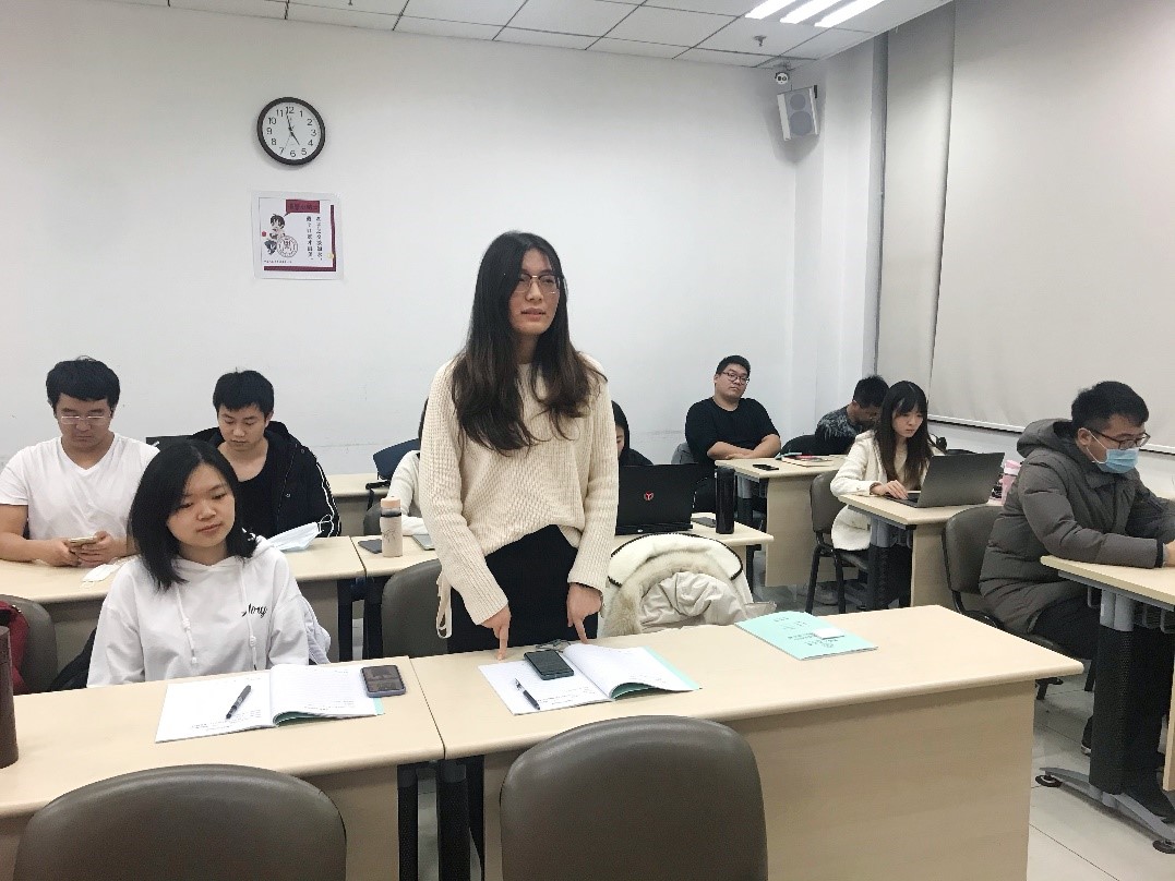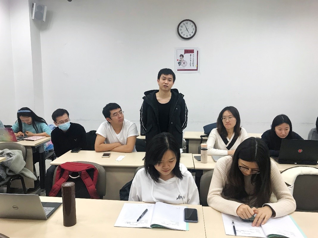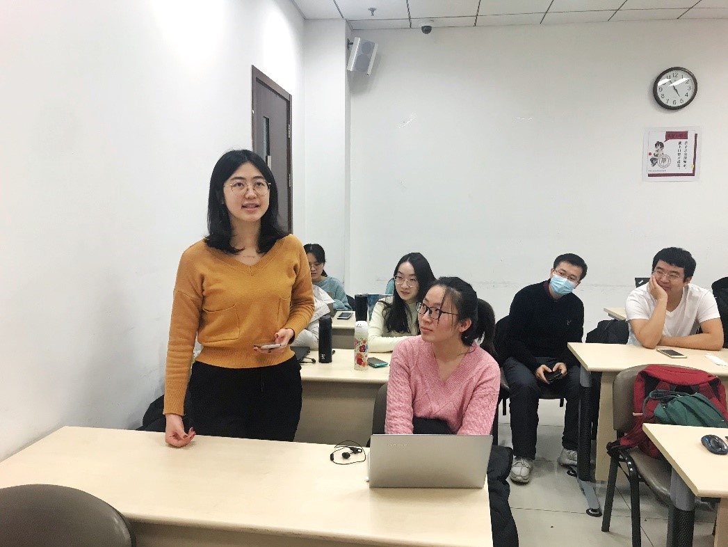 陈点点同志针对书中 “习近平总书记给我们讲述‘浙江精神’” 篇章进行发言。她表示,习近平总书记无论在地方还是在中央工作时一直注重实践,对各地的文化及历史渊源十分了解。因此,作为博士生,大家除关注课本知识外,还应加强对北京及自己家乡发展历程的关注与了解,这样才能更好地将所学知识运用到实际中来。