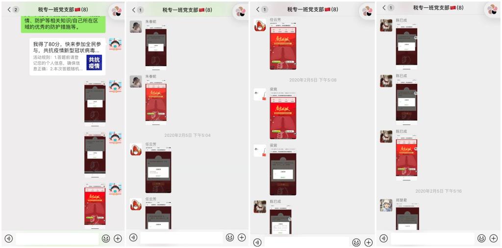 通过本次“抗击疫情,党员先行”主题活动的开展,支部党员通过线上答题与知识分享的形式,增强了对抗疫知识的了解与对疫情发展防控形势的掌握,坚定发挥共产党员的先锋模范作用,带头遵规守纪,弘扬正能量,积极维护社会公众秩序,在养成良好的个人生活习惯和公共卫生习惯的同时,教育引导身边亲友减少外出积极隔离。相信只要全国人民齐心协力、英勇奋斗、共克时艰,我们国家一定能取得疫情防控斗争的全面胜利!