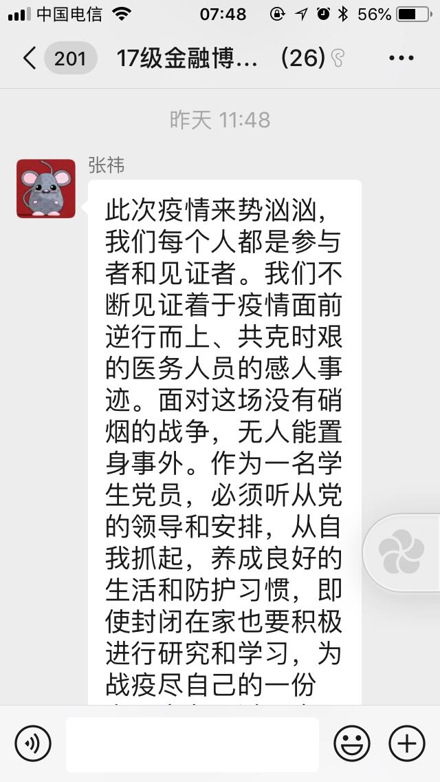 线上主题党日|2017级金融博士党支部分享疫情防控工作看法,坚定战“疫”胜利信心