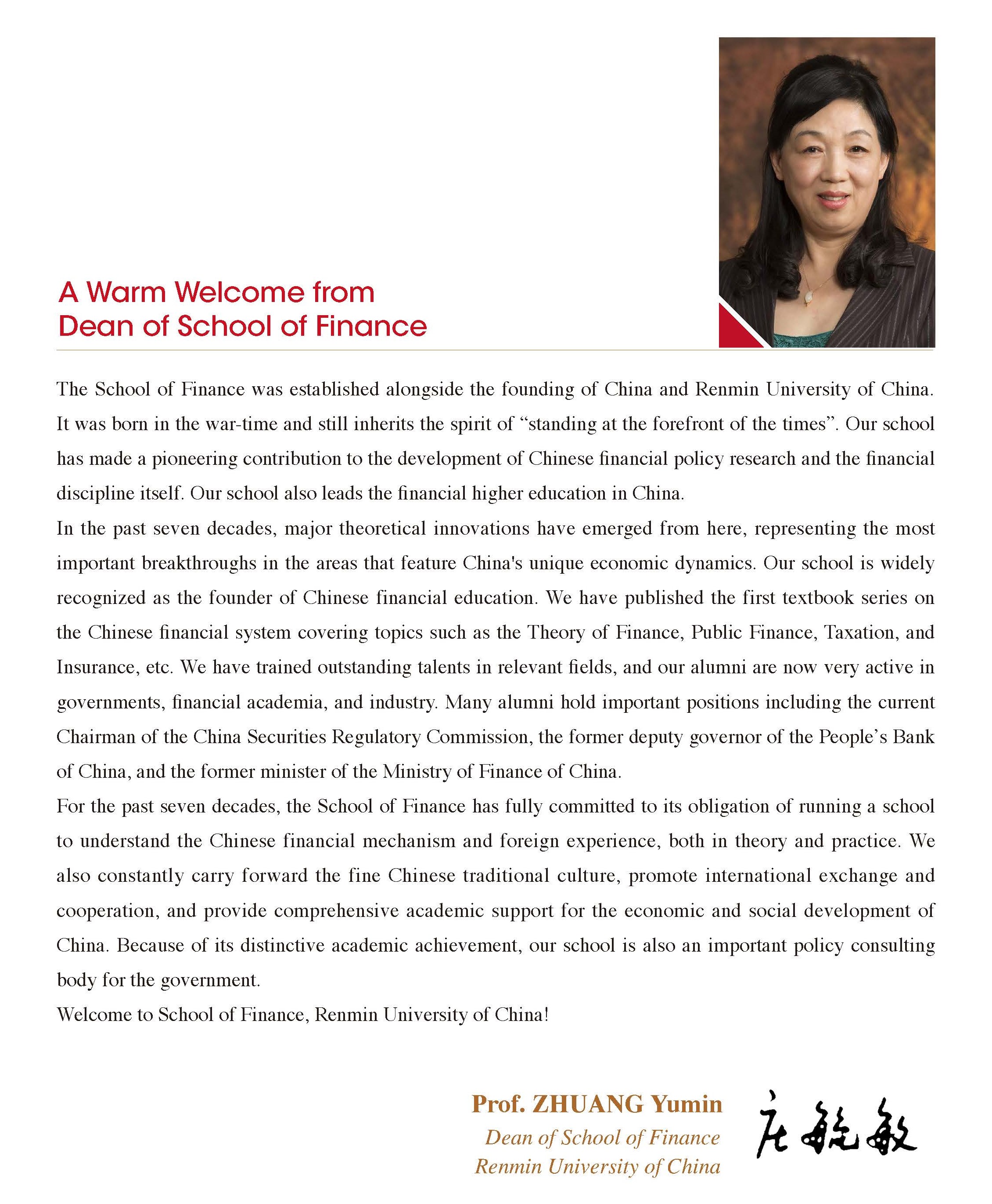 > Message from the Dean