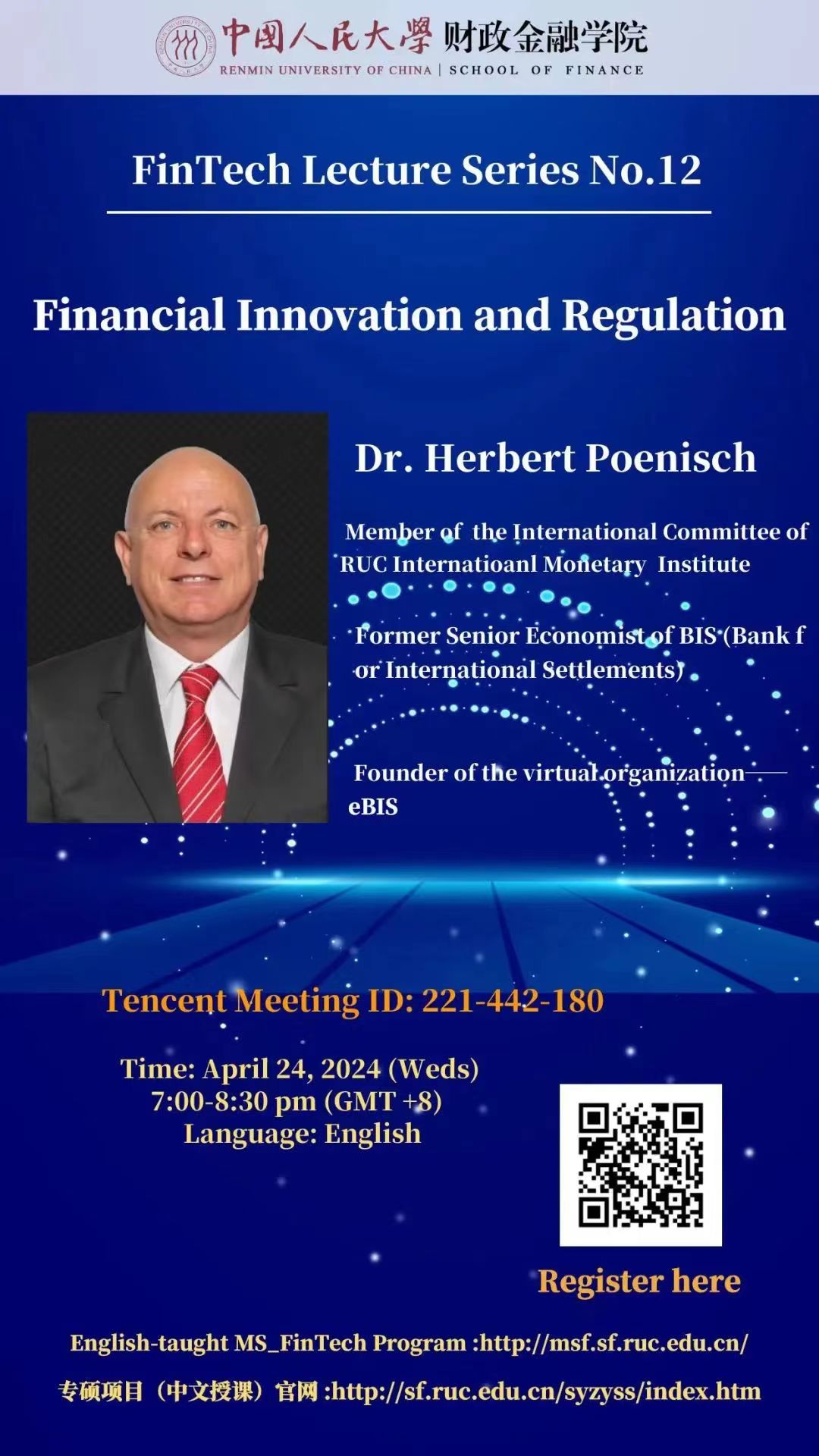 讲座报名 | BIS 前高级经济学家 Dr. Poenisch :金融创新与监管(英文)