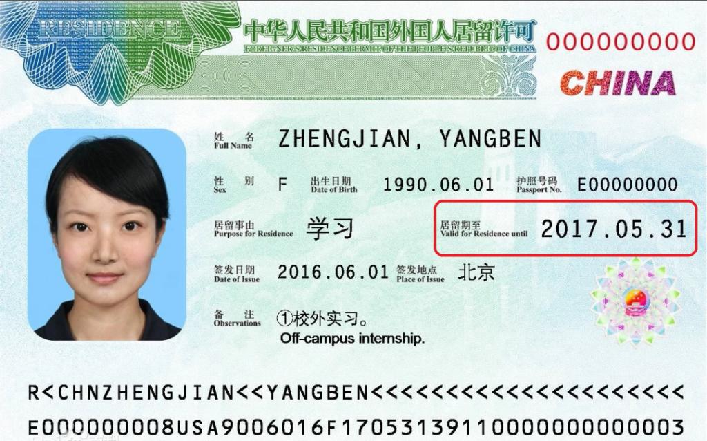 请参照上图示例仔细查看自己的居留许可有效期,如已经到期或即将到期,请立即与职工办公室取得联系,办理后续相关手续。