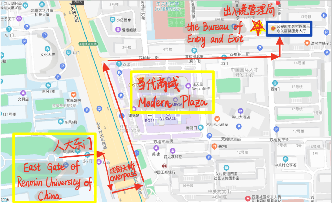地址:北京市海淀区双榆树北里甲22号北京市公安局出入境管理局中关村外国人服务大厅