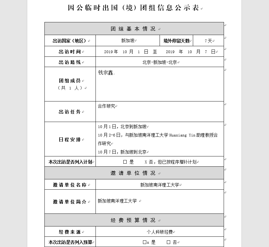 关于钱宗鑫副书记因公出国的公示