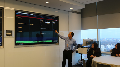 之后,吴亚锋师兄在会议室中与项目组进行了交流讨论。吴亚锋师兄先向同学们介绍了自己的个人经历,在后面的交流环节,师兄回答了学员们的提问。关于彭博社的信息来源的问题,吴亚锋师兄介绍到:彭博社信息主要为市场公开信息精选,为投资者筛选出他们必须知道的信息;这些信息的筛选原则是能帮助投资者获利;在发布新闻时,真实性高于时效性。关于彭博社的内部分工情况:彭博社内部主要可分为新闻部门、IT部门、客户服务部及销售部门,其中IT部门最大,IT部门的招聘标准大致与Google、Facebook等公司相同,是彭博社的核心竞争力所在。关于AI是否会取代人工的问题,师兄认为会有这个趋势,目前公司也在探索相关应用,但“AI虽然有智能却永远不会有智慧”,它只能按照人的指令工作。同时,吴亚锋师兄还为我们介绍了彭博终端系统的部分功能。