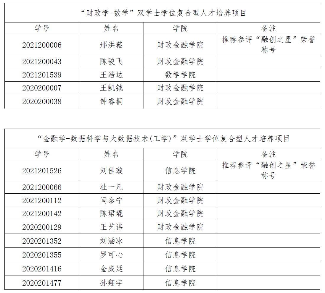 304永利集团2023年“中国工商银行融合创新优秀员工奖学金”及“融创之星”荣誉称号拟推荐人选公示
