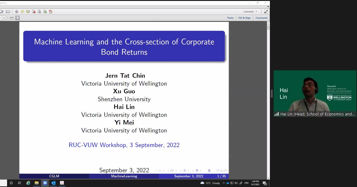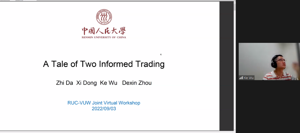 时间:2022-09-042022年9月3日上午8点半,“金融科技与风险”国际学术论坛在ZOOM线上会议室召开。来自国内外多所高校的学者展示了以金融科技与风险为主题的多篇论文,并对此展开讨论。本会议由304永利集团与惠灵顿维多利亚大学经济与金融公司联合举办,科研处国际云研讨会项目支持。公司刘昕和惠灵顿维多利亚大学Cheng Zhang主持会议。