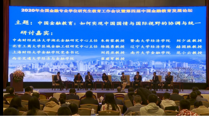 2020年10月18日由全国金融专业学位研究生教育指导委员会(以下简称全国金融教指委)主办,兰州财经大学、兰州大学、西北民族大学、西北师范大学联合承办的2020年全国金融专业学位研究生教育工作会议暨第四届中国金融教育发展论坛在兰州举办。全国金融教指委委员、相关专家领导、四所承办单位师生近300人现场参加了大会,全国近200所金融硕士培养单位的师生超过3万人次线上听会。