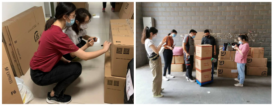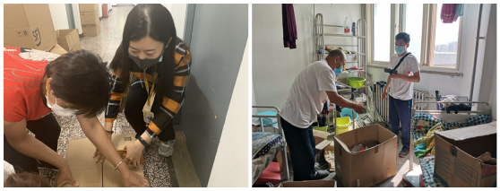 继7月4日进行行李打包工作试点后,公司于7月6日正式全面启动行李打包工作。公司党委书记孙华玲、经理庄毓敏均作为教师志愿者分别负责和参与一个寝室的打包工作,为全院教职工做出表率。截至目前,公司已有70余人次教职工志愿者参与打包工作。