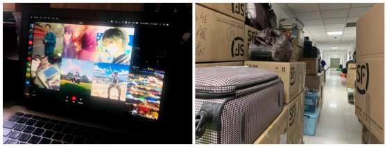 疫情无法击垮真情,透过窄窄的屏幕,教职工志愿者和打包人员按员工的意愿打包行李,融入汗水、融入关心、融入祝福,化作对毕业生的一份独特的礼物。在这过程中,有的老师中午匆匆吃完午饭,便投入紧张的打包工作中;有的老师帮助员工先行保存贵重物品,防止邮寄损坏丢失......毕业生们也纷纷在微信群、朋友圈中表达对老师的感谢和对公司代打包服务的赞扬,纷纷晒出与行李的合影,一句句“辛苦了”、一声声“谢谢老师”,道不尽财金师生桃李情。