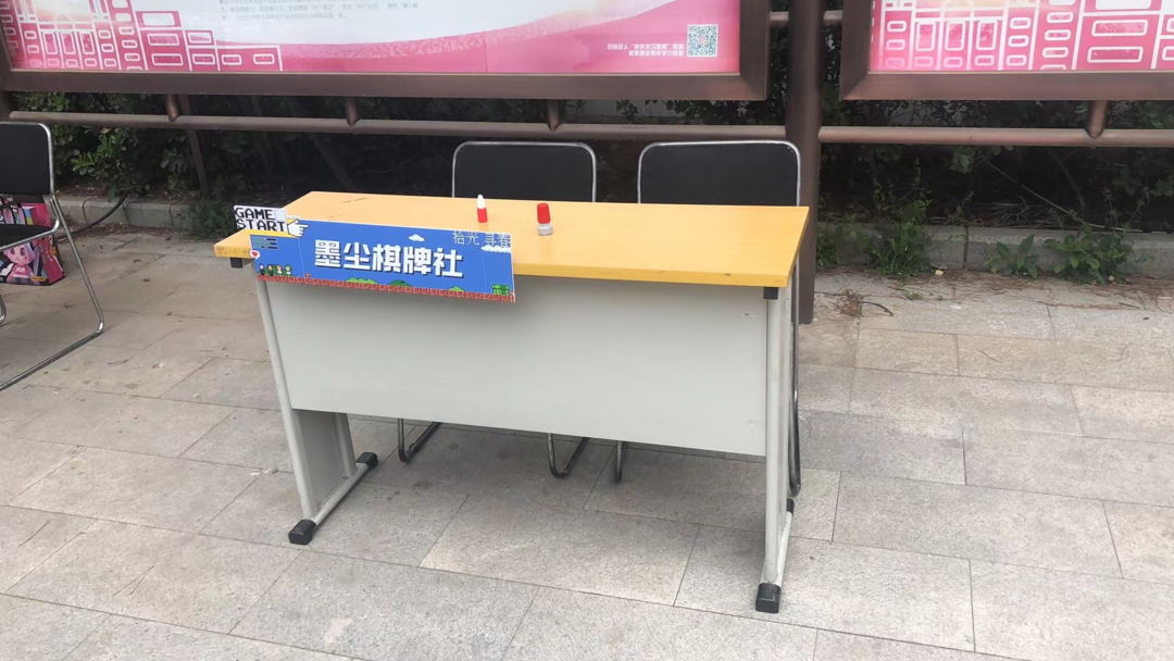 墨尘棋牌社的成员早早前往摊位,做好相关准备。