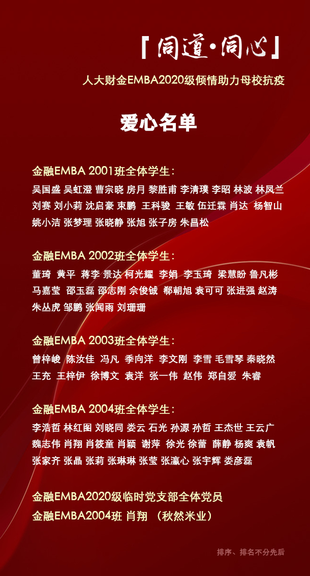 人大财金EMBA2020级全体员工、2020级临时党支部倾情助力母校抗疫