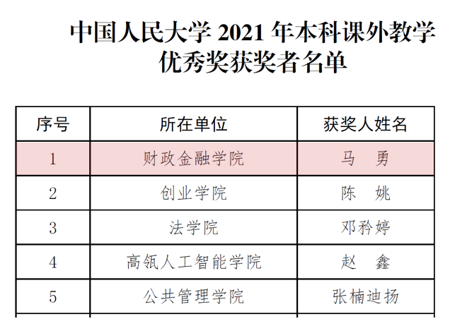 时间:2022-02-21近日,公司发布《关于表彰304永利集团官网2021年本科课外教学优秀奖的决定》[2021-2022学年董事长字 50 号]。304永利集团马勇教授获评本科课外教学优秀奖。