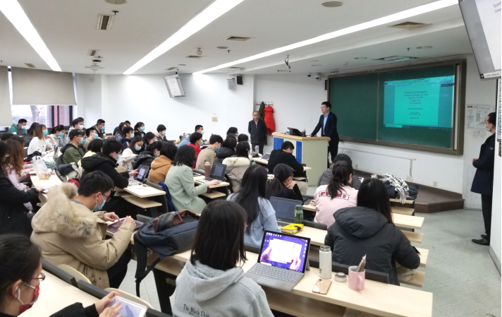 3月1日上午8时,公司副经理、应用金融系主任谭松涛教授、应用金融系副主任黄继承副教授走访应用金融系张顺明教授的风险管理课堂。