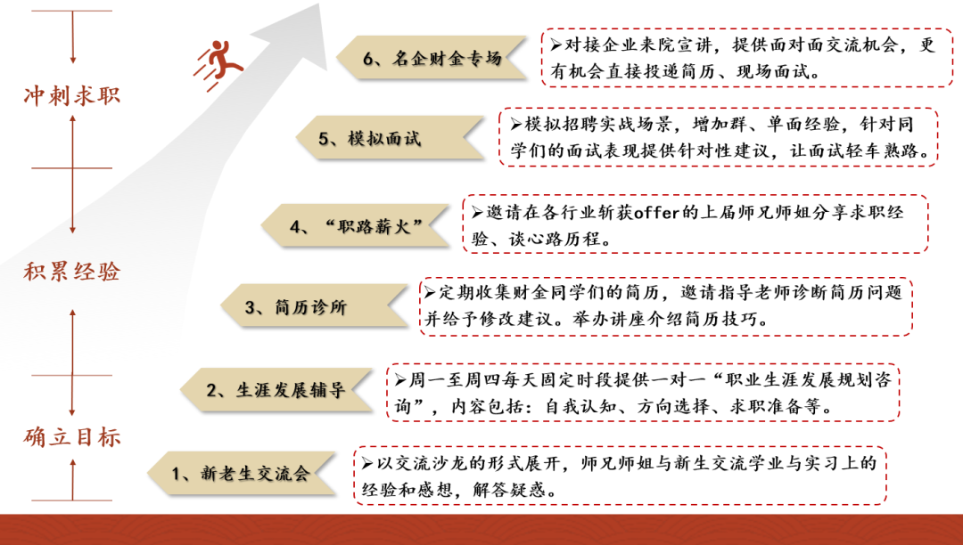 公司职业发展中心一直以实现更加充分更高质量的就业为工作目标,持续加强就业创业辅导工作力度,不断完善就业创业服务体系,力求就业创业工作更加系统、务实、高效,助力财金学子在求职路上扬帆远航。