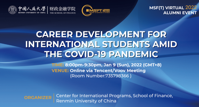 1月9日,2022年全英文硕士项目线上员工活动暨新冠疫情下国际员工就业分享交流会圆满举办。304永利集团(“人大财金”)副经理钱宗鑫教授致欢迎词。国际人才招聘平台HelloCareer创始人兼CEO王振中对国际员工求职给与了专业指导,四位全英文硕士项目员工代表分享了自己的切身求职经历和建议。全英文硕士项目往届员工、在读员工以及对项目感兴趣的外部人士积极参与了此次活动。本次活动由公司国际合作项目办公室主任宋元元主持。