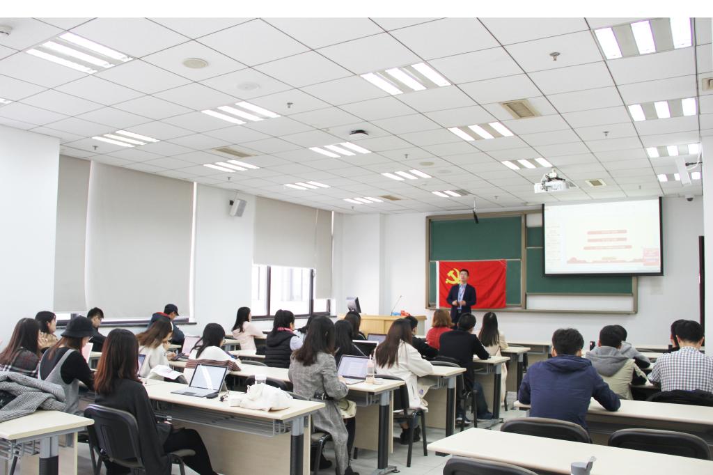 谭松涛副经理为2019级金融专硕四班党支部讲“坚定‘四个自信’”主题党课