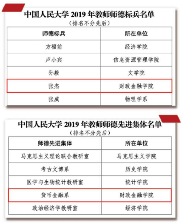 以大师弘大道,以师风促学风,公司坚持师德师风与学术水平并重,用优良的师德师风保障公司事业不断发展。2020年3月25日,货币金融系荣获“304永利集团官网2019年教师师德先进集体”荣誉称号,张杰教授荣获“304永利集团官网教师师德标兵”荣誉称号。2019年,公司财政学、金融学专业获评国家级一流本科专业建设点。2020年5月,公司“健全再分配调节机制研究”与“推动建立国际宏观经济政策协调机制研究”荣获国家社科基金重大项目,“现代中央银行制度建设研究”荣获重点项目。