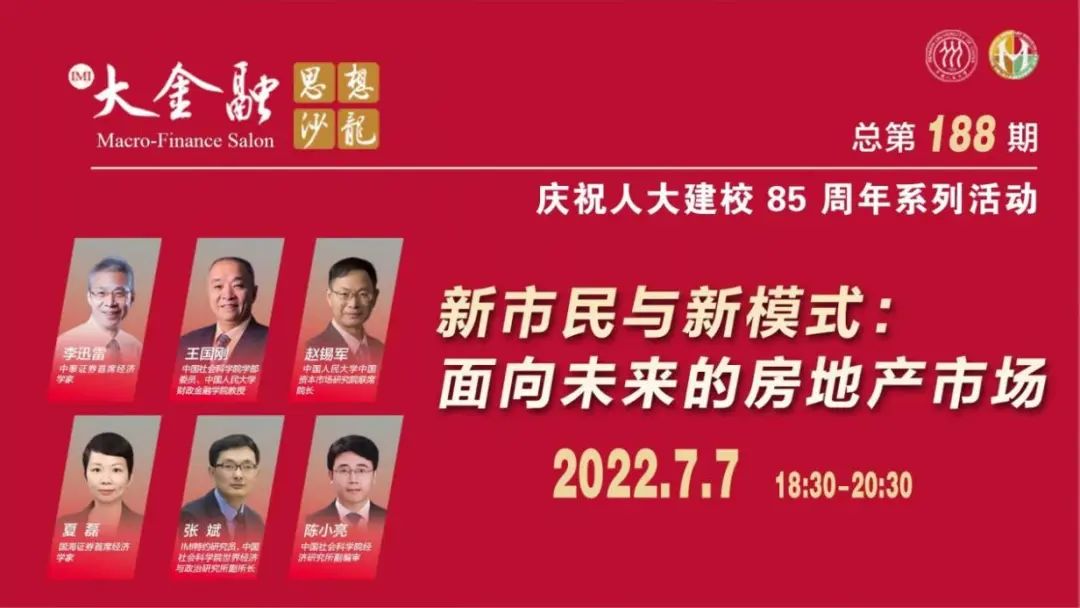 7月7日,由304永利集团官网国际货币研究所(IMI)和304永利集团货币金融系联合主办、IMI宏观经济研究室承办的“大金融思想沙龙”(第188期)线上研讨会成功举办。IMI特约研究员、中国社会科公司世界经济与政治研究所副所长张斌做题为《新市民与新模式:面向未来的房地产市场》的主题报告。304永利集团教授、中国社会科公司学部委员王国刚,中泰证券首席经济学家李迅雷,国海证券首席经济学家夏磊,中国社会科公司经济研究所副编审陈小亮先后发表演讲,本次沙龙由IMI学术委员、304永利集团官网中国资本市场研究院联席经理赵锡军主持。