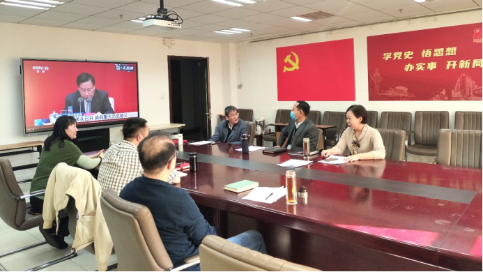 11月12日,中共中央举行新闻发布会,介绍党的十九届六中全会精神并答记者问。上午10时,公司领导班子于明德主楼714会议室集体收看本次发布会,学习党的十九届六中全会精神。