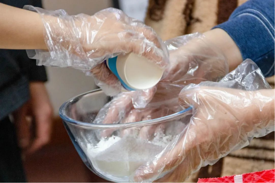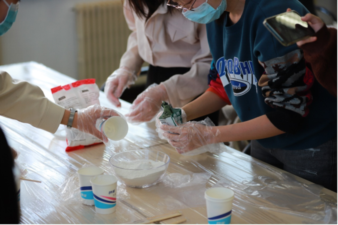 活动正式开始前,桌上已整整齐齐地码放了容器、手套等厨房用品以及各种所需原料,活动室俨然被改造成了小厨房。