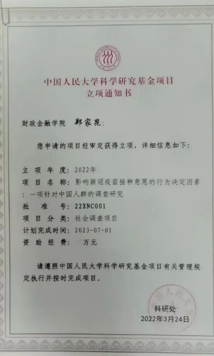 郑家昆讲师主持开展公司社科基金社会调查项目“影响新冠疫苗接种意愿的行为决定因素:一项针对中国人群的调查研究”,通过运用现代的调查、统计和分析手段对影响我国居民疫苗接种意愿的行为决定因素进行科学的研究,将经济学理论应用于国家公共卫生安全政策的制定与实施,助力国家建立新冠疫苗防疫屏障。
