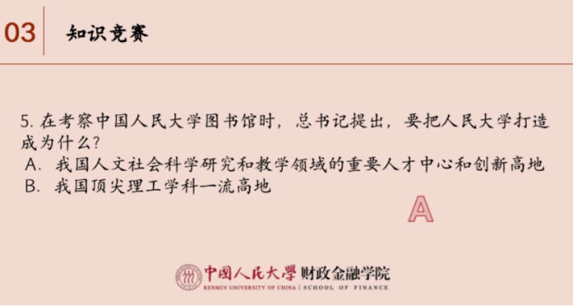 2021级本科金融二班团支部设置单选题、多选题、简答题等形式多样的题目,通过腾讯会议的形式让支部成员开麦抢答,并且采用积分制对支部成员的答题情况进行记录,充分调动了支部成员参与知识竞赛活动的积极性,让支部成员做到“学思用贯通,知信行统一”。