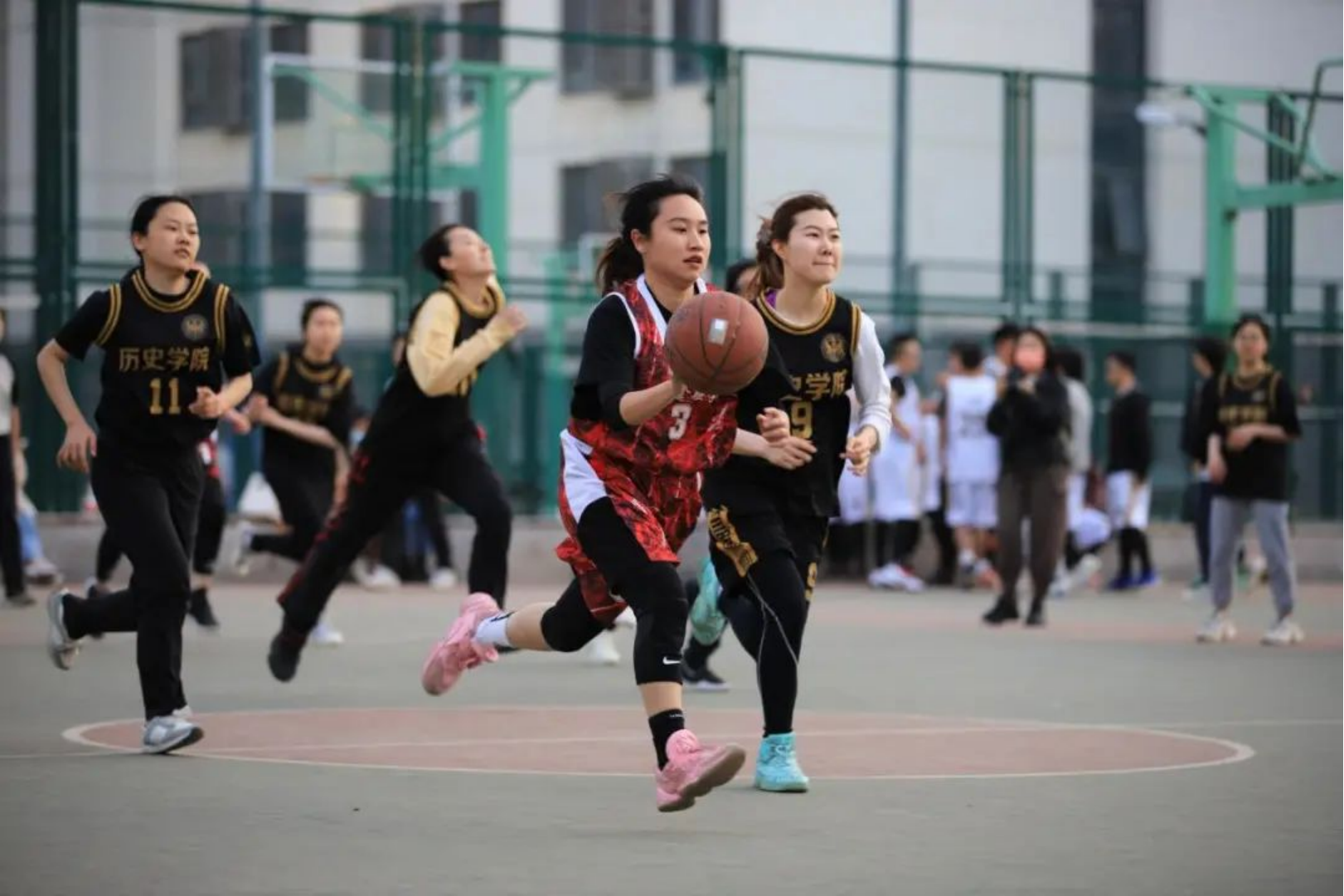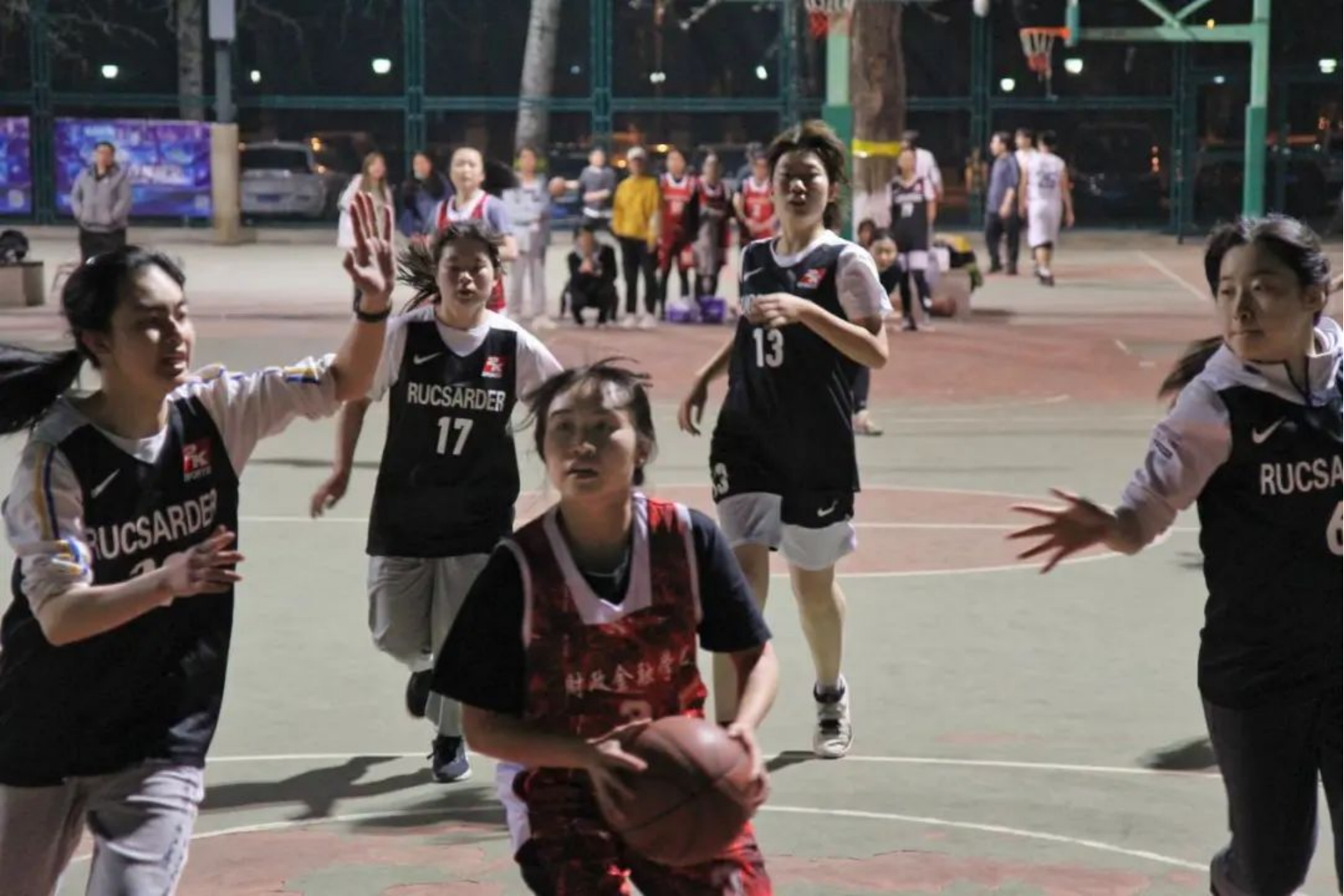 4月12日晚,篮球联赛第二场在品园篮球场展开激烈对决。最终财金女篮以20:4大比分战胜历史公司女篮,豪取二连胜。