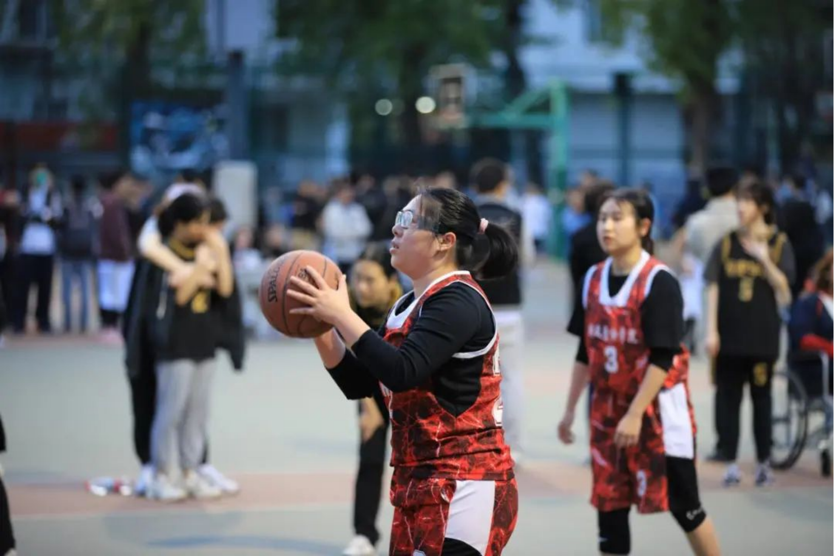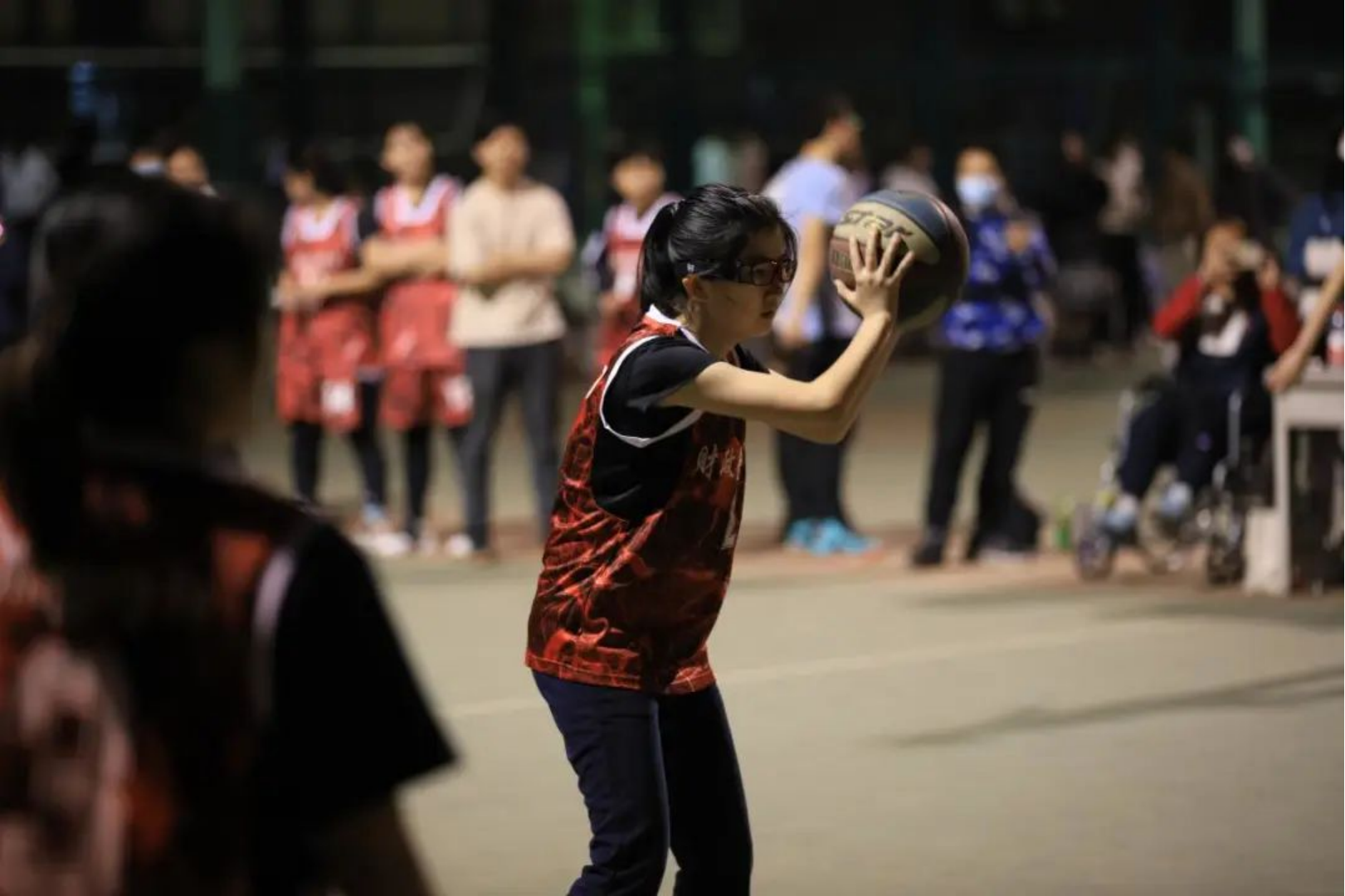 第二节,对方紧追不舍,迅速拉进比分。局势一度变得焦灼起来。我方换上皇甫梁怡,加大了进攻力度。在双方的你追我赶后,我方投进三分球重振旗鼓,第二节比分17:20,我方稍稍落后。