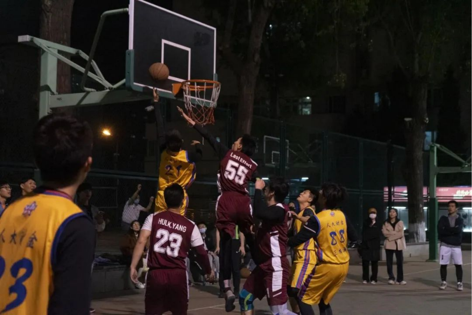 4月7日晚,篮球联赛在品园篮球场重燃战火。财金男篮对阵新闻男篮。经过一番激烈角逐,最终财金男篮以37:46不敌新闻男篮。