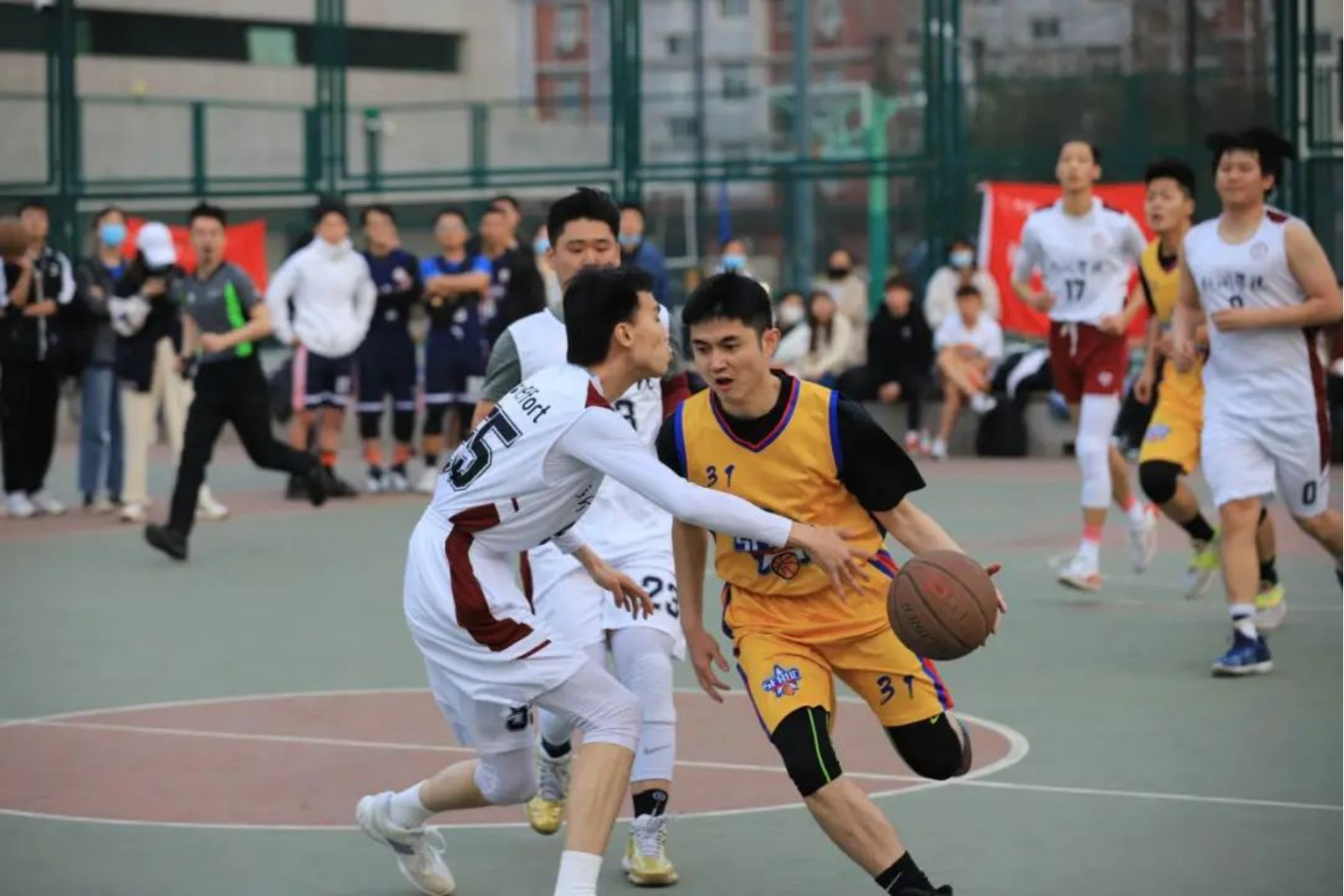 最后一节,财金逐步调整状态,丝毫不因先前失误气馁。晚间寒风阻挡不了观众的热情,他们全力为财金男篮加油助威。唐文博巧妙占据后方空位,闪电上篮进攻,一套动作行云流水。比赛进入倒计时,我方争分夺秒,阻断对手进攻。最终,比分定格为29:37,财金男篮惜败新闻。