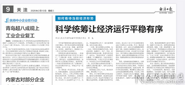《防疫情、促经济,两手抓两手硬的八点政策建议》在人大重阳公号上获10万+阅读量