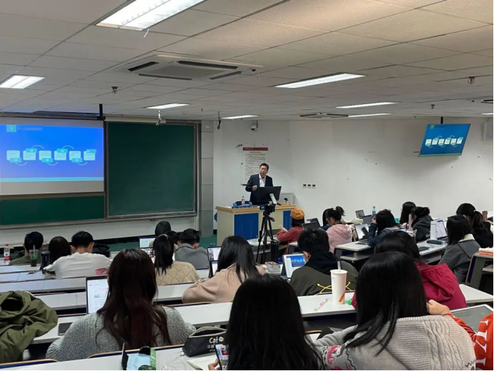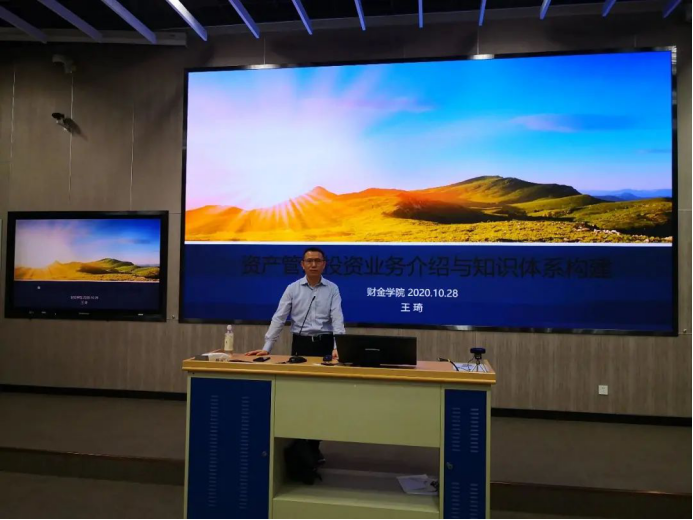 10月28日,泰康资产管理有限责任公司权益投资部执行总监王琦先生以“资产管理投资业务介绍与知识体系构建”为题,从国内资管业务体系、资管的投资业务和投资业务需要的知识体系与心理素质三方面,介绍了资产管理投资业务分类,以及在不同金融机构中的知识需求和如何构建相应知识体系。王琦先生从资产管理投资业务总览视角,介绍了目前国内相关人才的空缺,对同学们提出了培养相关知识和素质方面的期许和展望。