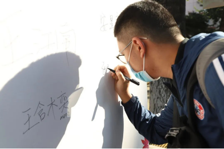 在迎新现场,新生们纷纷在签名板上签下姓名并合影留念,收获与财金的第一张“合照”,留下与财金美好的“最初记忆”。
