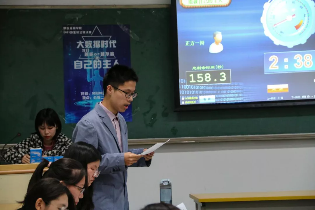 本次比赛的辩题为“大数据时代,我们越能/不能做自己的主人”。简单的自我介绍后,正方一辩徐赫辰开篇陈词。他首先对“大数据时代”进行了定义,并提出:在大数据时代,判断人们是否更加能做自己的主人的依据,在于其对生活的掌控能力是否变得更强。他列举了大数据在危机预警领域应用的例子,佐证人更能掌控自己的命运。同时,他也提出:在大数据时代,人们不必受困于简单重复的机械劳动,因而更有机会发挥自身的主体性。反方四辩刘一鑫紧随其后进行质询。他用“妈宝男”的例子鲜明地提出:我们通过大数据获得了便利,却在这个过程中让渡了自己主动分析思考、主动做出决策的能力。