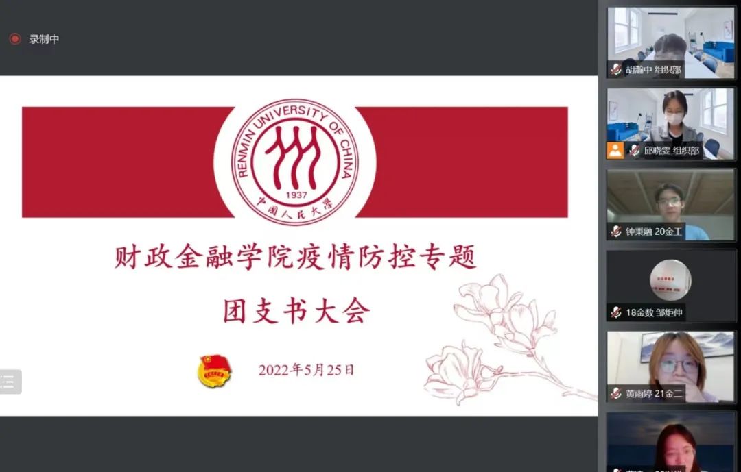 秦天鼓励各团支书要充分发挥团学骨干的模范带头作用,提醒同学们做好个人防护,并结合疫情防控形式,对近期开展的团员教育评议和五四评优工作进行布置安排。