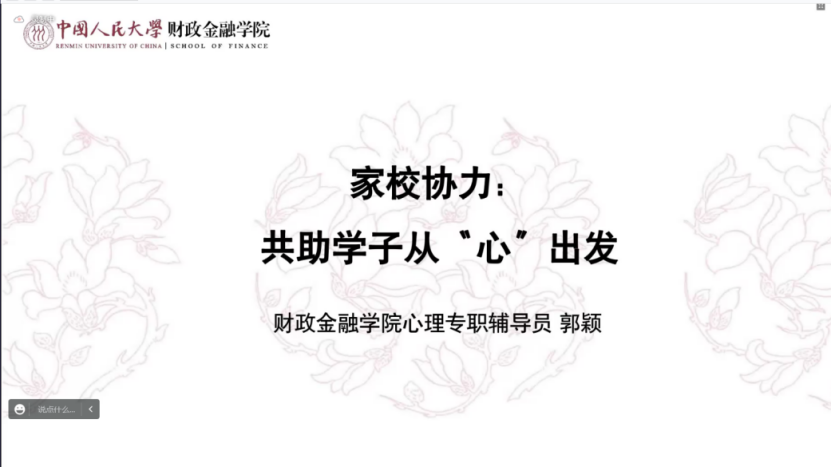 郭颖作题为“家校协力,共助学子从‘心’出发”的讲座。她表示,员工在大学中将面临多种挑战,新鲜感、懈怠感等都可能会对他们的心理状况产生影响。此外,老员工活中,他们还需要完成明确自我概念、肯定追寻方向、职业发展等心理发展任务。所以在员工进行角色转换的过程中,家长们要用全面的眼光看待孩子的发展,关注他们各方面的成长。家长对待孩子的方式应该从管理孩子转变为让孩子自我管理、从说教转变为陪伴,为员工的成长提供坚强后盾。