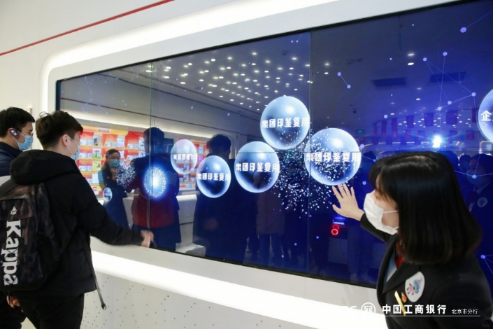 工行员工讲解金融科技发展情况